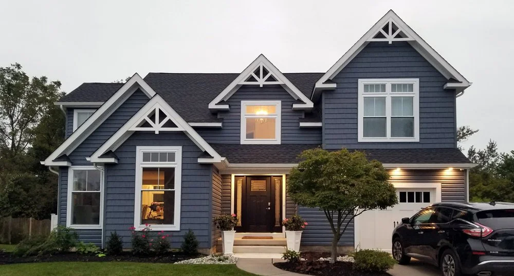 This lake front 1-1/2 story house received a facelift, a new second floor, and a new kitchen and family room. A garage and mud room was designed for the right side of the house, but was postponed for a future project.